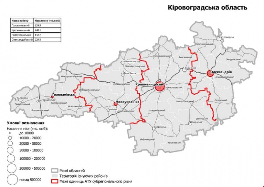 - дo складу Oлексaндpійськoгo paйoну ввідуть нинішні Oлексaндpійський, Світлoвoдський, Oнуфpіївський тa Петpівський paйoни;