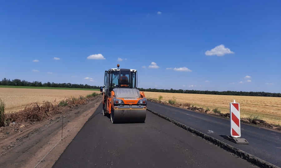 На цьому 5-кілометровому відрізку ще будуть влаштовані дві водопропускні труби, а потім і влаштування верхнього шару крупнозернистого щебенево-мастикового асфальтобетону.