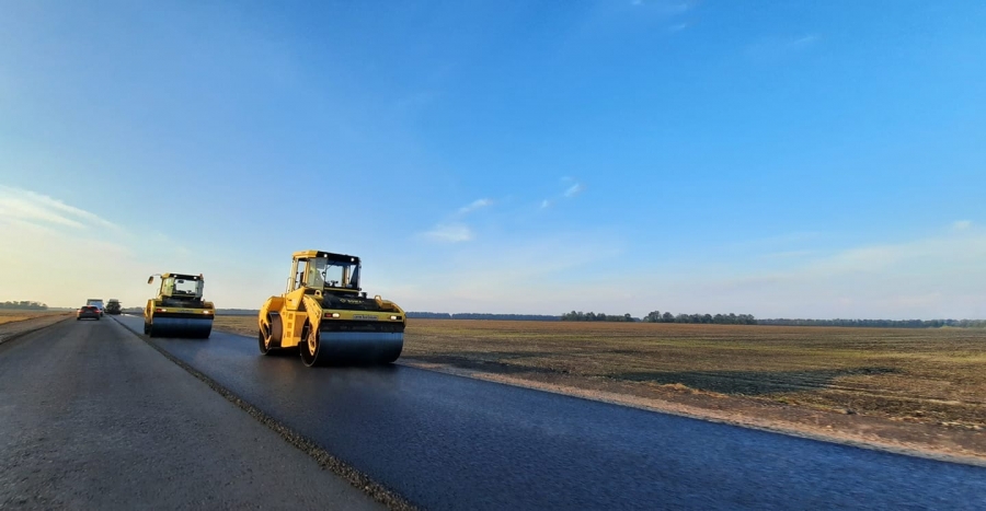 На 25-кілометровій ділянці дороги на Кривий Ріг завершили укладання вирівнюючого шару асфальту.